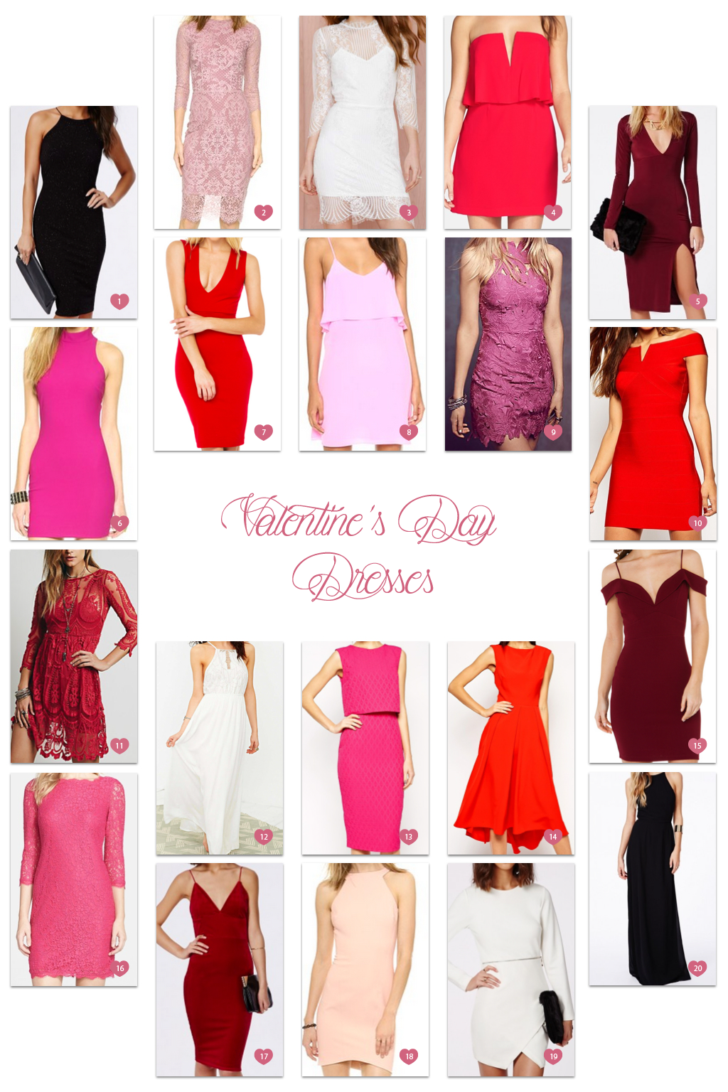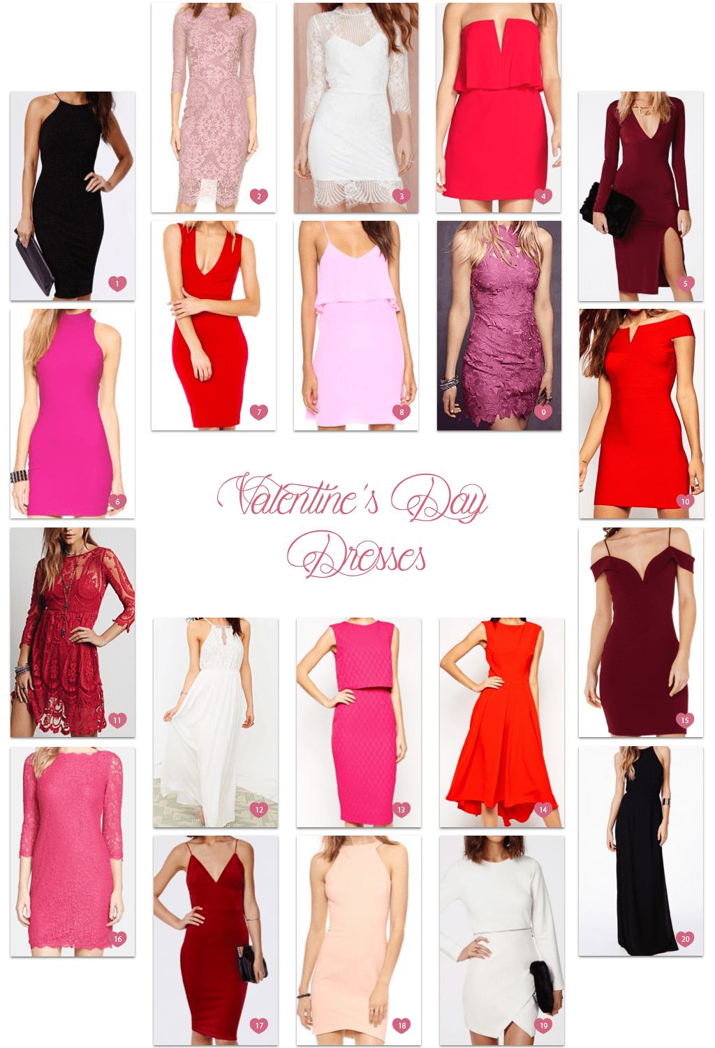 Last week I kicked off my series of guides covering all things Valentine’s Day. The first of my series aimed to give you a head start on your outfit planning by sharing 3 inspirational looks. This week, it’s all about the dress. I scoured the web to select 20 dresses, all of which are perfect for any Valentine’s Day plans you may have. While these dresses vary in style, color, and price, each pick has enough detail that you can keep the rest of your look simple — and let your own beauty shine! Hope you find something you fancy, friends!
